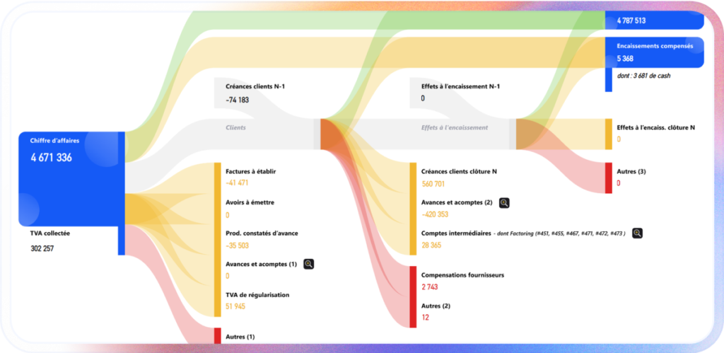 Un pack complet d’analyses automatisées, organisées par cycle, structuré pour un audit fluide et efficace > Bilan, compte de résultat, TFT, chiffre d’affaires, anomalies.